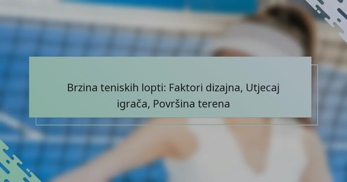 Brzina teniskih lopti oblikovana je raznim dizajnerskim faktorima kao što su materijali, unutarnji tlak i aerodinamička svojstva, što je ključno za igrače prilikom odabira prave lopte. Osim toga, tehnike i snaga igrača igraju vitalnu ulogu u generiranju snage i kontrole, dodatno utječući na dinamiku igre. Štoviše, površina terena utječe na odskok i spin lopte, što utječe na to koliko brzo putuje i strategije koje se koriste tijekom igre.