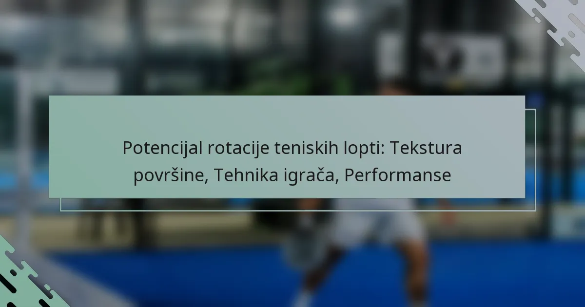 Potencijal rotacije teniskih lopti ključni je faktor koji utječe na njihovu putanju i ponašanje na terenu, a uvelike ga određuju tekstura površine, tehnika igrača i ukupna izvedba. Tekstura lopte utječe na prianjanje i interakciju s žicama reketa, dok učinkovite tehnike igrača mogu maksimizirati generiranje rotacije, što na kraju utječe na dinamiku igre.