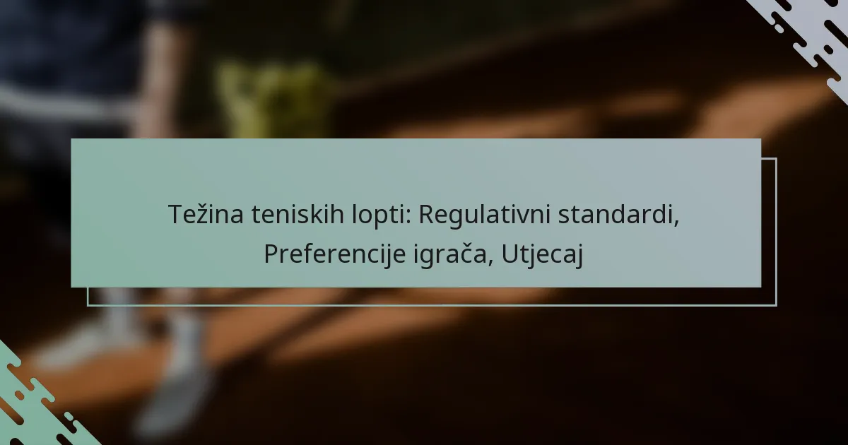Težinu teniskih lopti regulira Međunarodna teniska federacija (ITF), koja nalaže da one moraju težiti između 56,0 i 59,4 grama. Ova standardizacija je ključna za održavanje pravednosti u profesionalnoj igri, dok preferencije igrača mogu dovesti do varijacija u specifičnim težinama odabranim za mečeve i treninge. Težina lopte značajno utječe na igru, utječući na odskok, izdržljivost i ukupnu izvedbu igrača.
